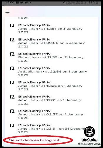 برای حذف دستگاه های متصل به اینستاگرام، ابتدا کاربران می بایست دستگاه های مشکوک را شناسایی کرده و سپس بر روی نام دستگاه کلیک نموده و گزینه Logout را انتخاب نمایند. همچنین امکان خارج نمودن چند دستگاه از اکانت اینستاگرام وجود دارد و بدین منظور کافیست کاربران به بخش انتهای صفحه مراجعه نموده و همانند تصویر زیر بر روی گزینه select devices to log out کلیک نمایند.